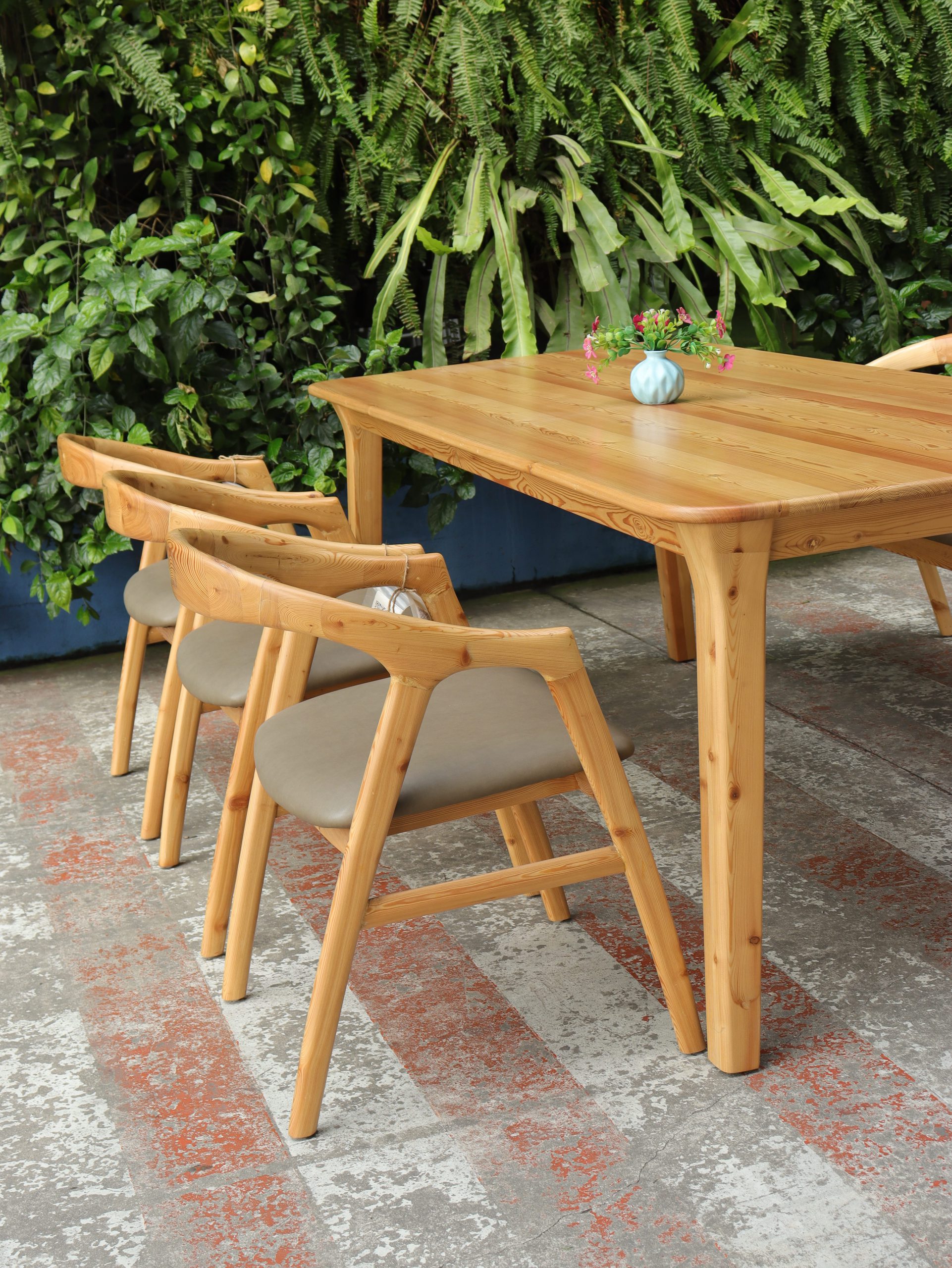 Bộ bàn ăn gỗ thông nệm xám đậm sở hữu thiết kế đơn giản, nhẹ nhàng, phù hợp với nhiều không gian phòng ăn. Sản phẩm được làm từ gỗ thông tự nhiên, trọng lượng nhẹ, thuận tiện trong quá trình sử dụng và sắp xếp.